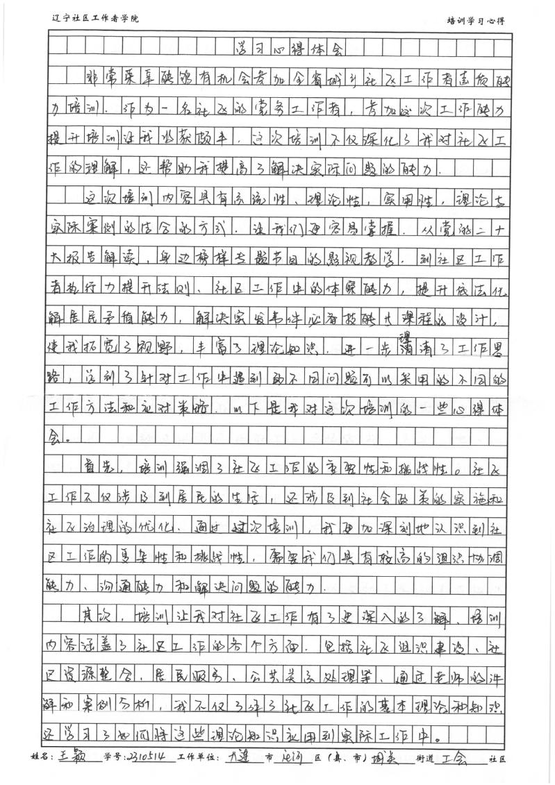 大连市庄河市城关街道工会社区党总支副书记王颖学习心得