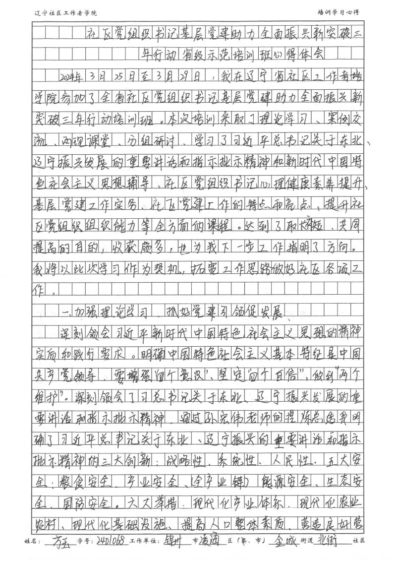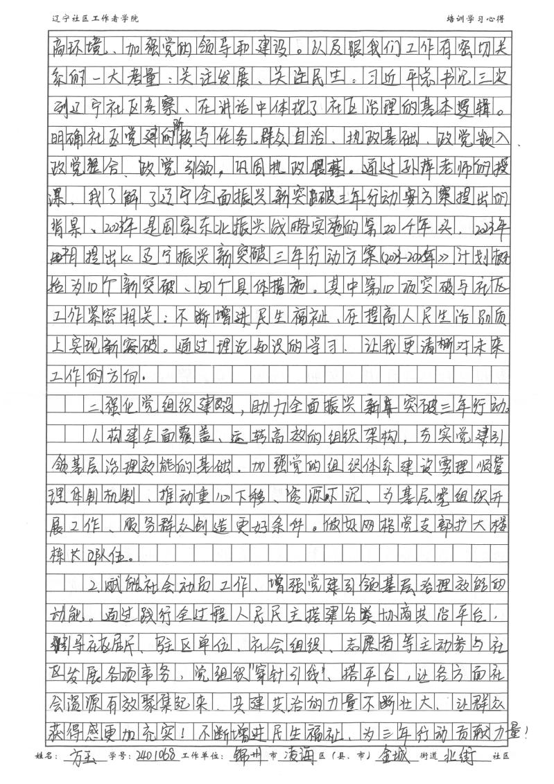 锦州市凌海市金城街道北街社区党支部书记、居委会主任方玉学习心得
