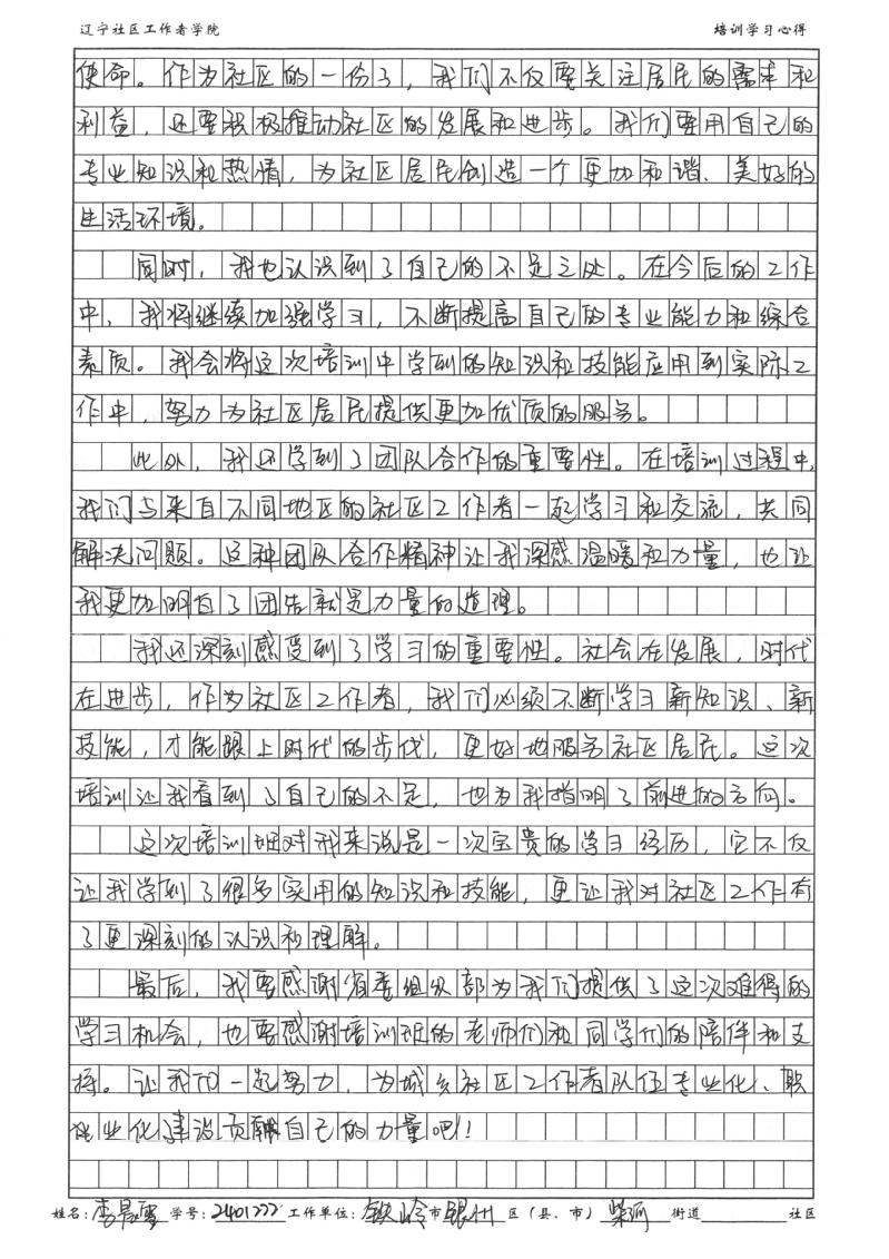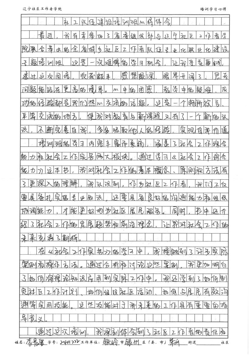 铁岭市银州区柴河街道社区工作者李晨雪学习心得