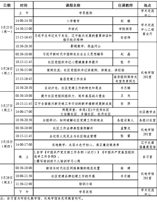 2024年第一期全省社区党组织书记基层党建助理全面振兴新突破三年行动省级示范培训班(总第141期)课程安排