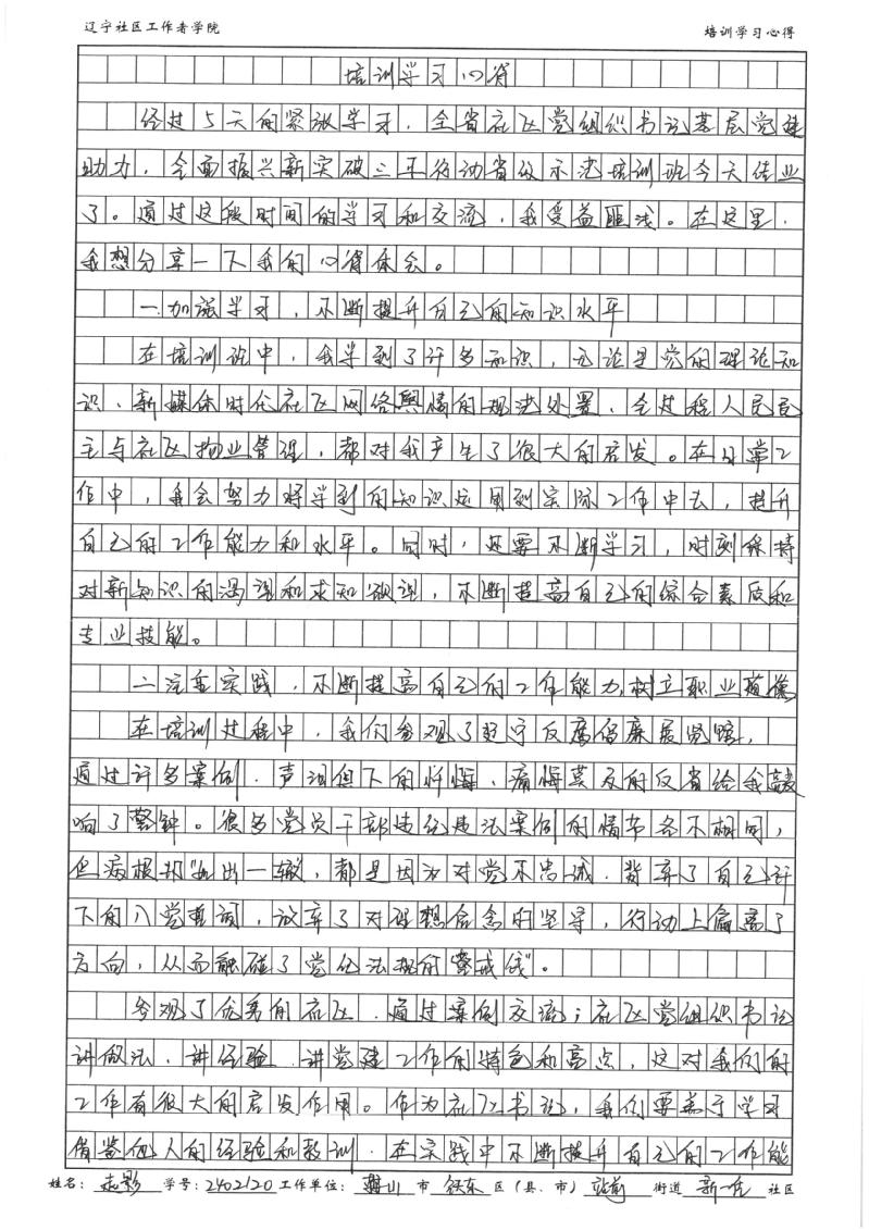 鞍山市铁东区站前街道新一佳社区党委书记、居委会主任赵影学习心得