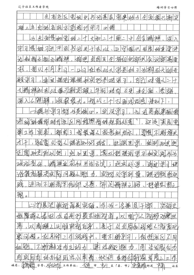 大连市中山区老虎滩街道中南社区党委书记、居委会主任王春梅学习心得