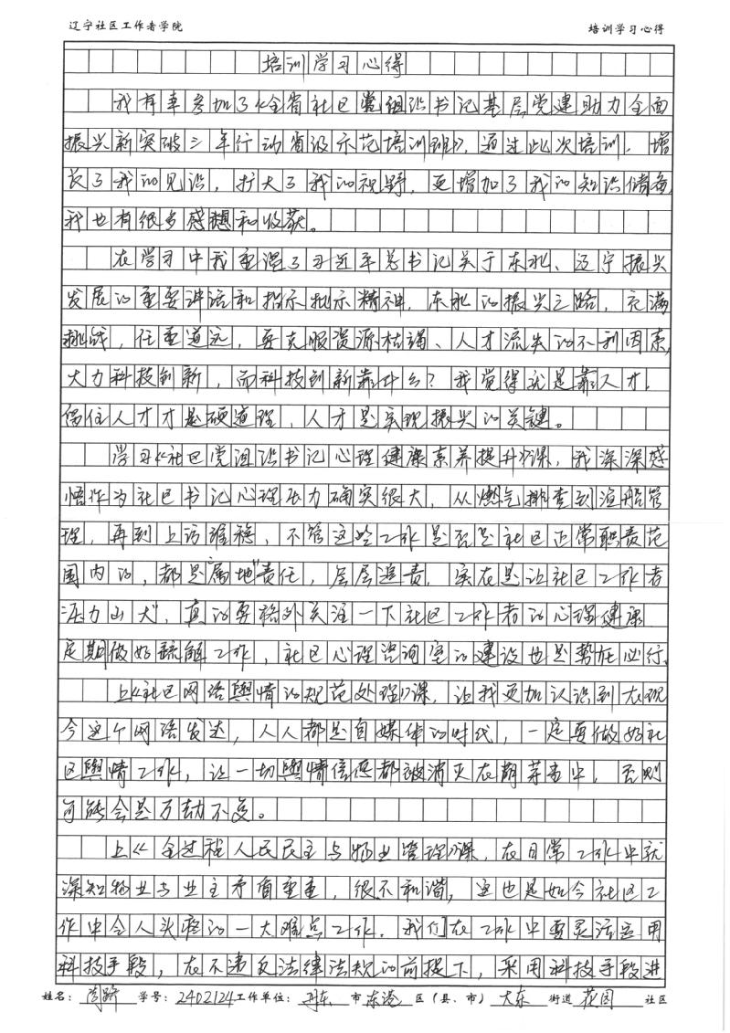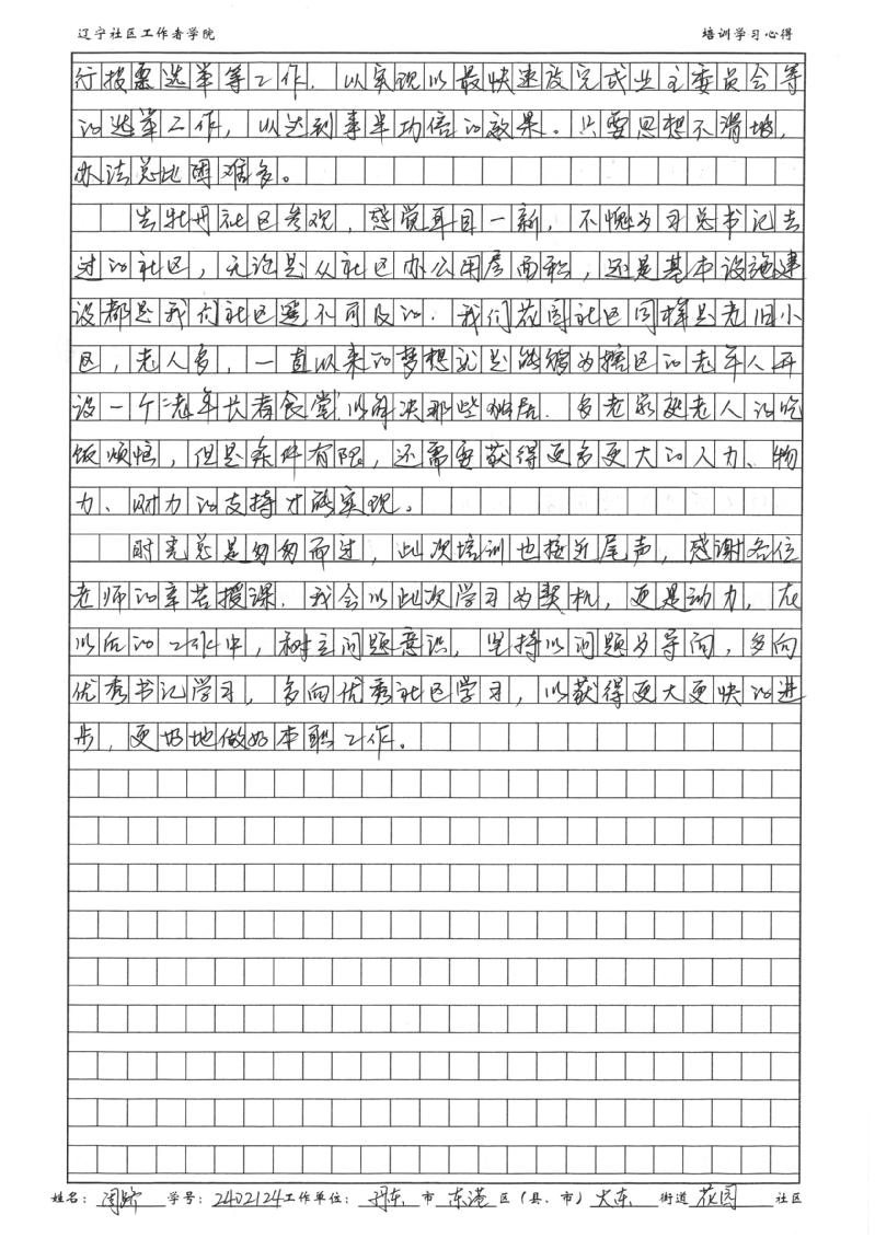 丹东市东港市大东街道花园社区党委书记、居委会主任周跻学习心得