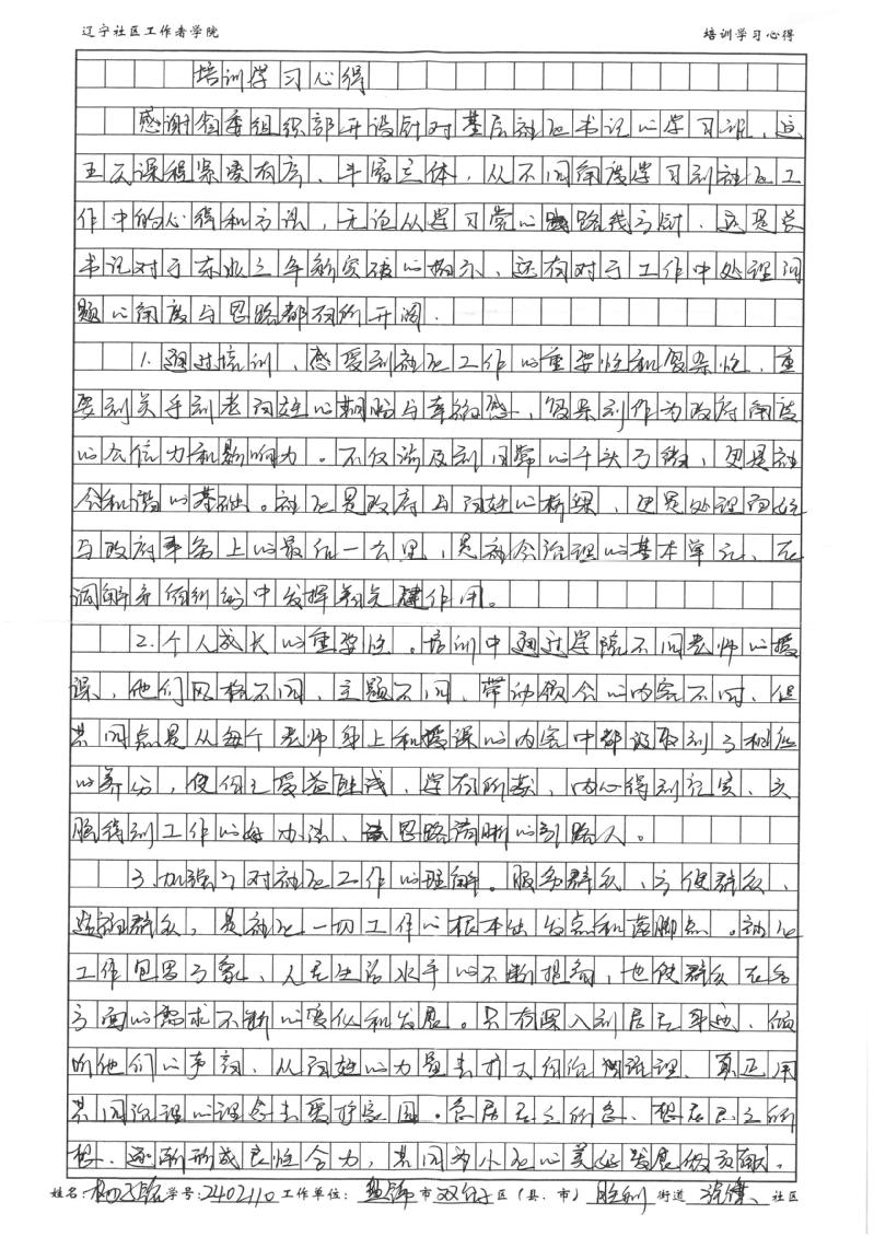 盘锦市双台子区胜利街道旌旗社区党委书记、居委会主任杨子铭学习心得