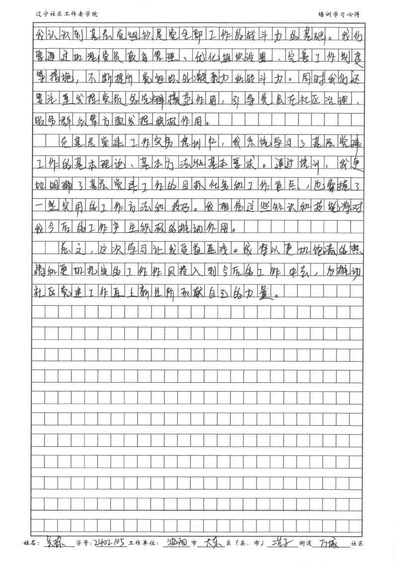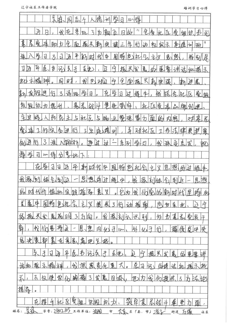 沈阳市大东区二台子街道万城社区党支部书记、居委会主任吴琼学习心得