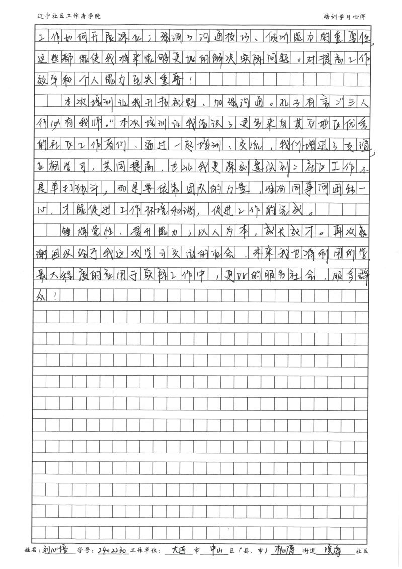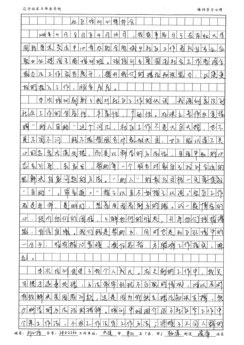 大连市中山区桃源街道滨海社区公共服务专干刘心培学习心得