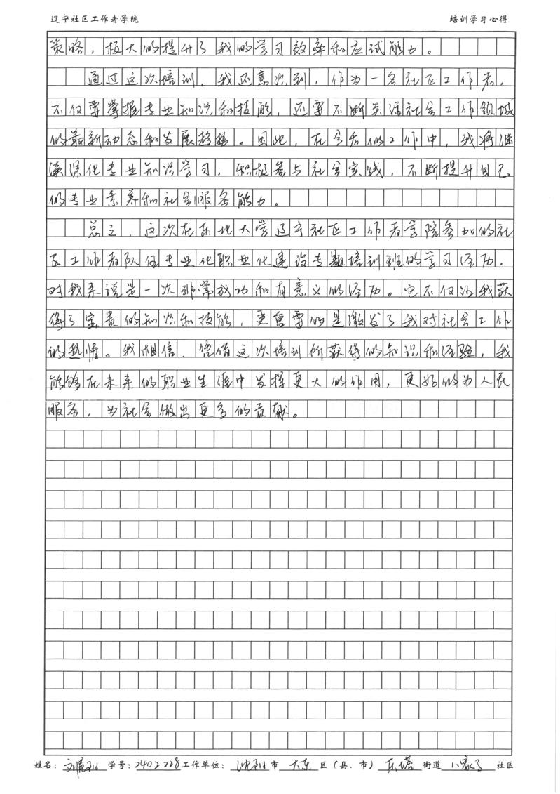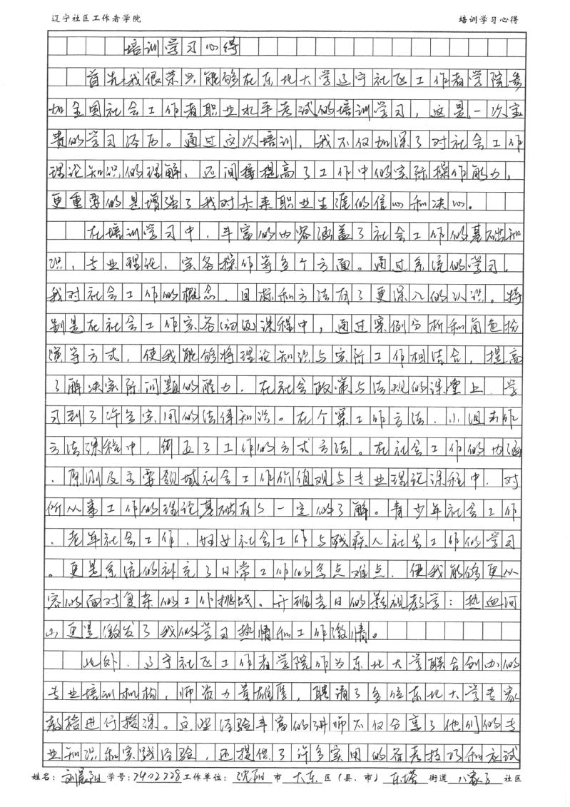 沈阳市大东区东塔街道八家子社区工作者刘晨阳学习心得