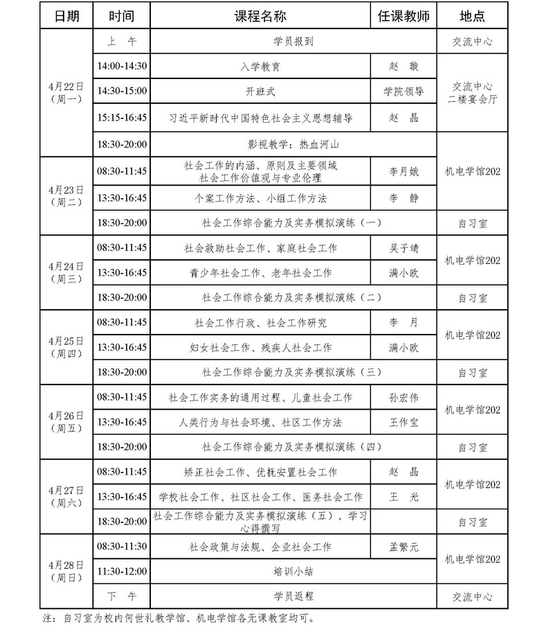 2024年第四期全省城乡社区工作者队伍专业化职业化建设专题培训班(总第65期)课程安排