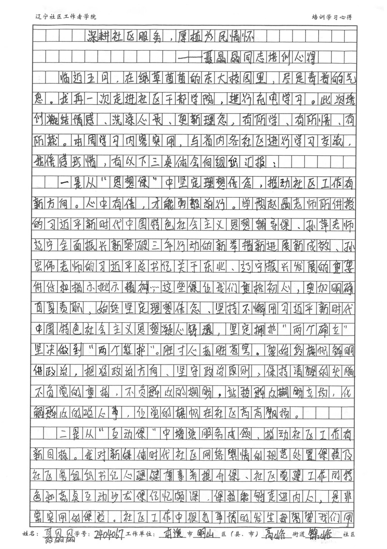 本溪市明山区高峪街道锦峪社区党委书记、居委会主任聂晶晶学习心得