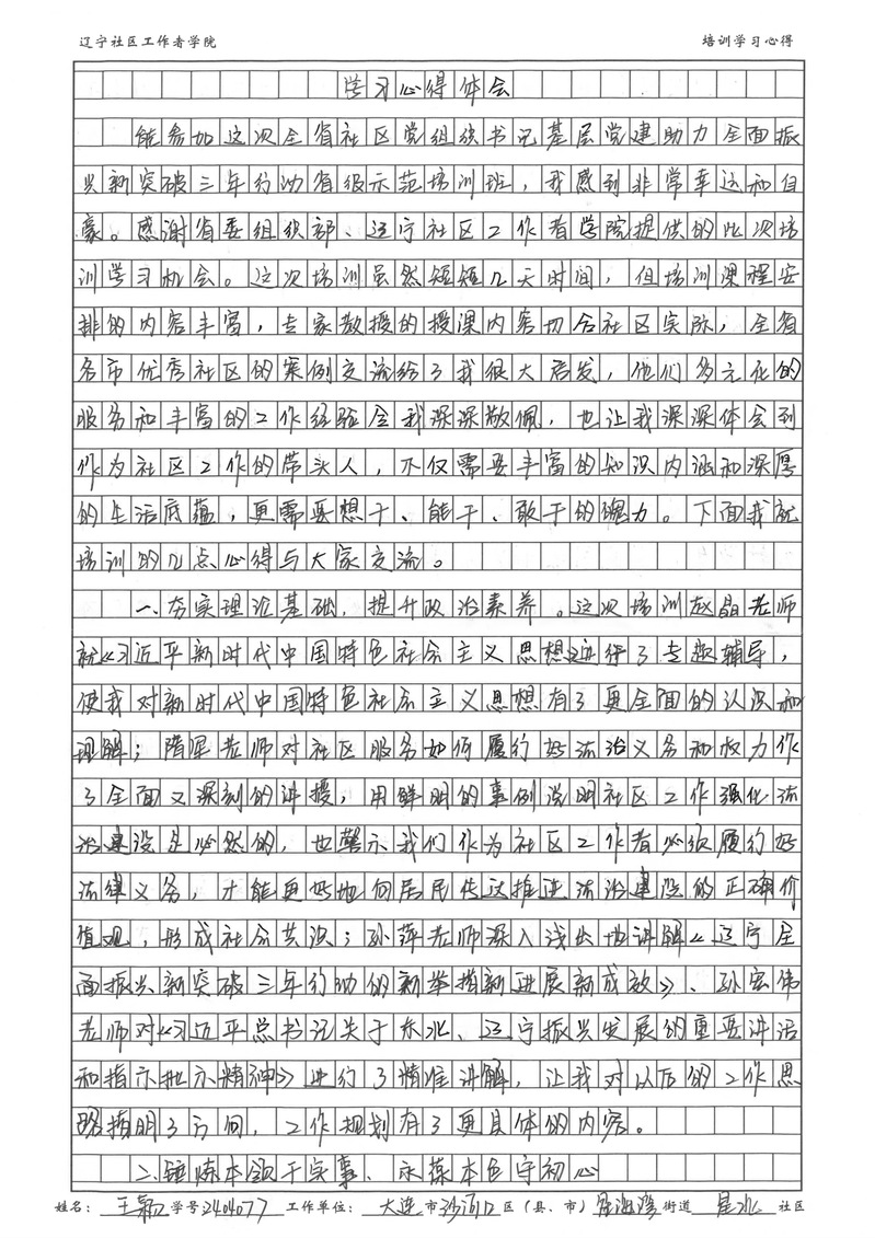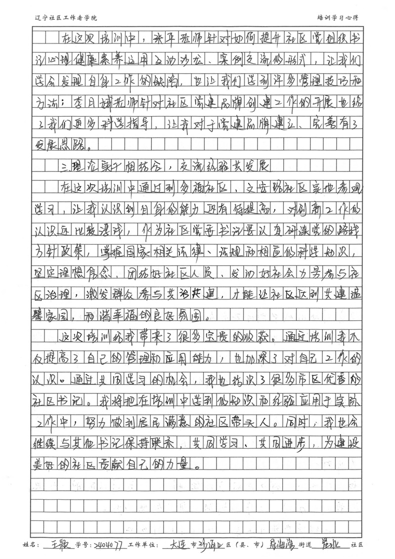 大连市沙河口区星海湾街道星北社区党委书记、居委会主任王颖学习心得