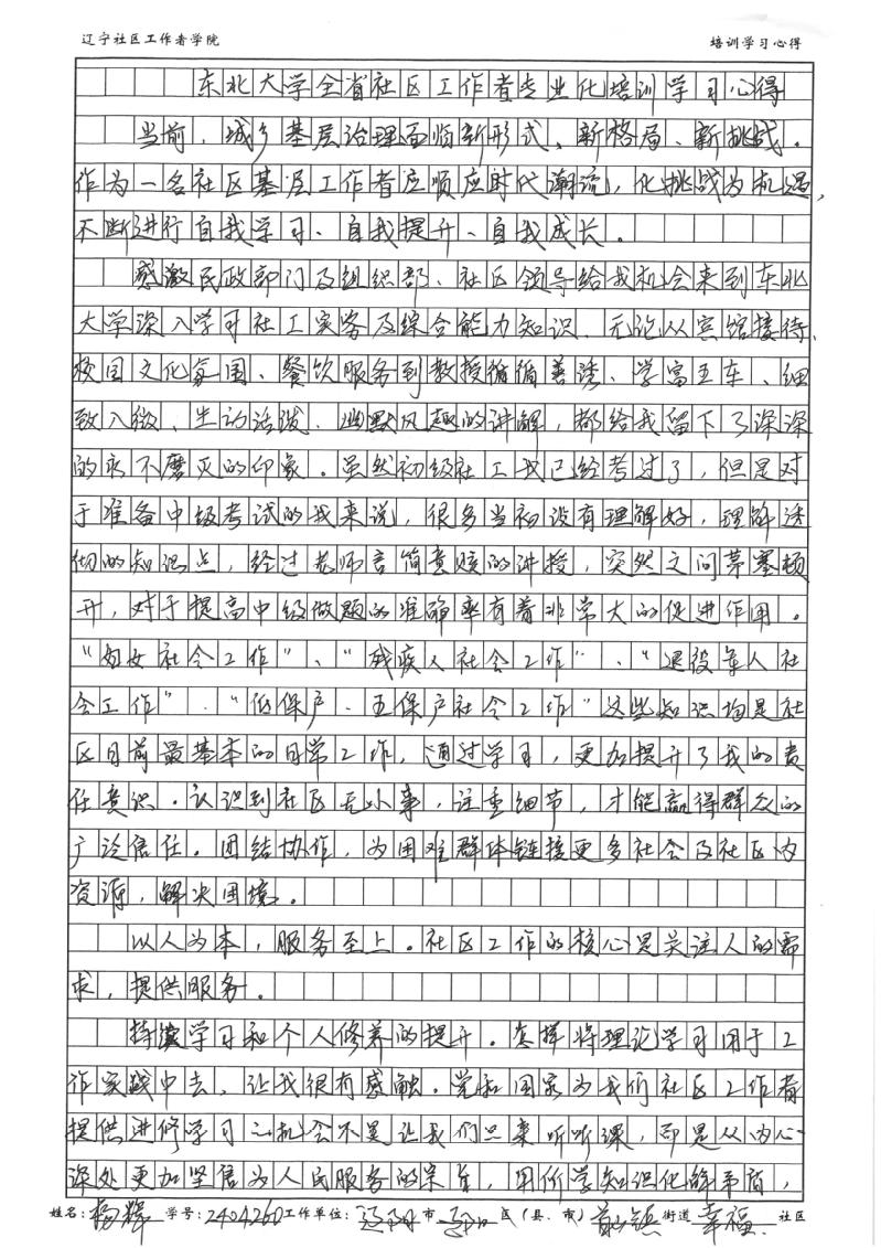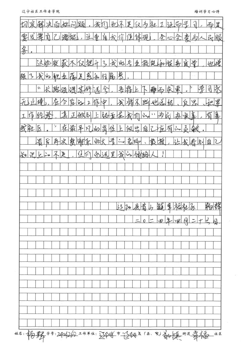 辽阳市辽阳县首山镇幸福社区社区工作者杨辉学习心得