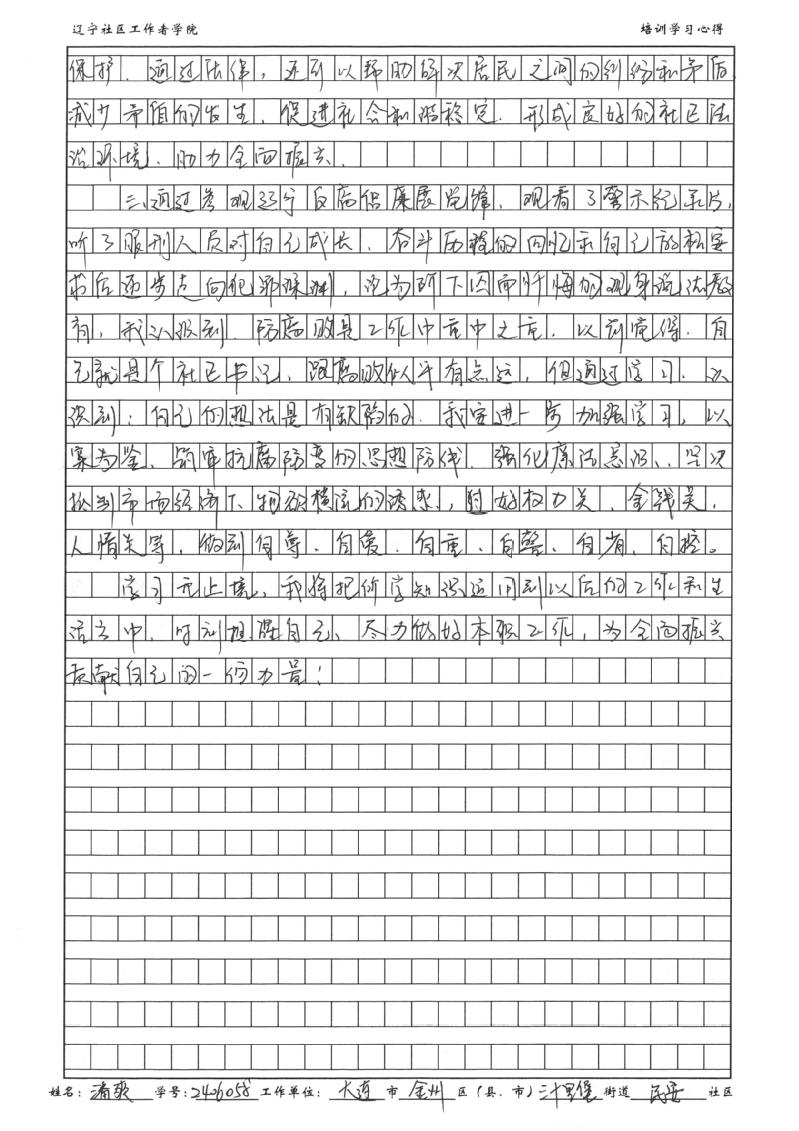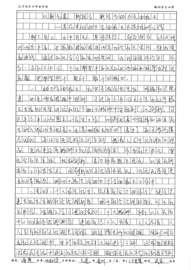 大连金普新区三十里堡街道民安社区党支部书记、居委会主任潘爽学习心得