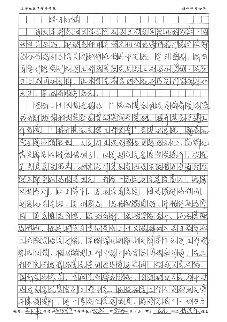 沈阳市苏家屯区民主街道振兴东社区党委书记孙津学习心得