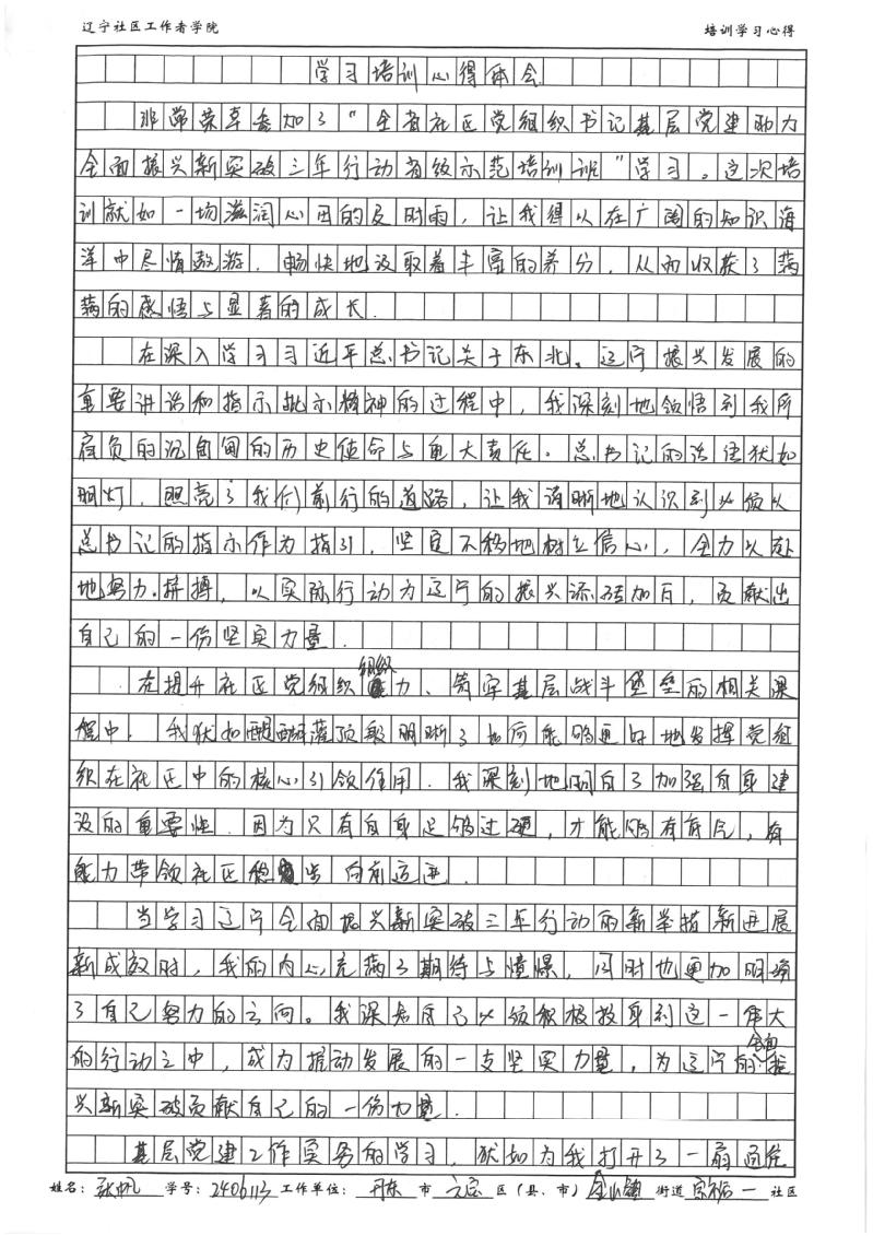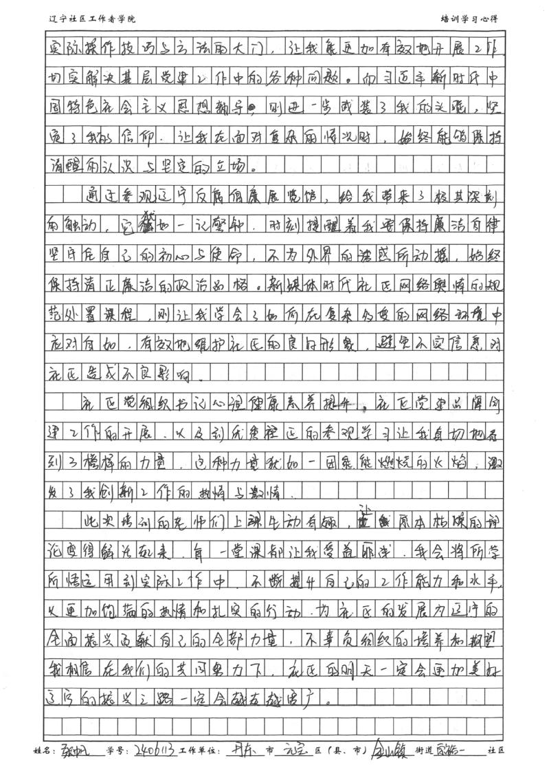丹东市元宝区金山镇宗裕一社区社区党委书记、居委会主任张帆学习心得