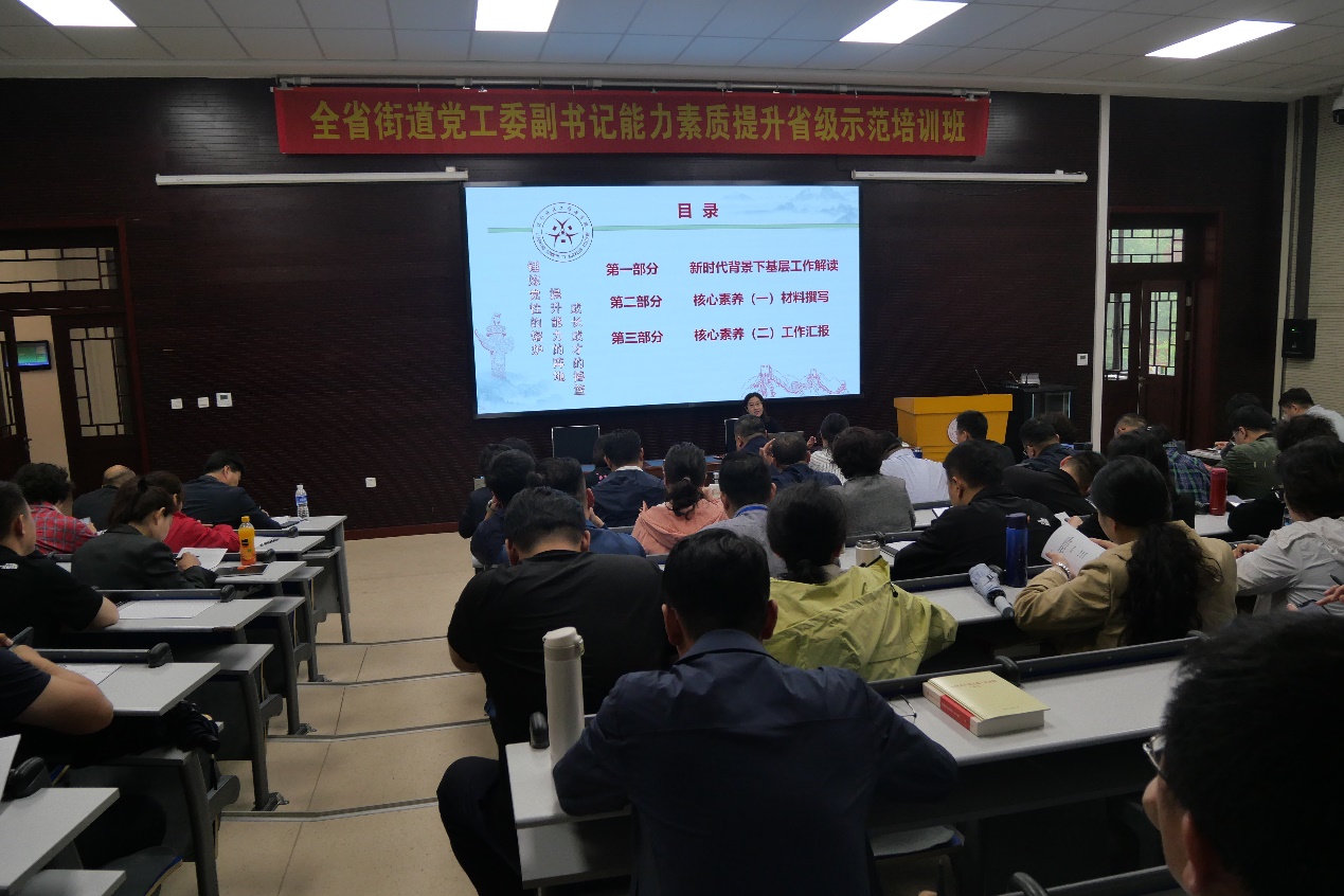本次培训从5月20日开始,为期五天。培训期间,学院为学员安排了内容丰富的理论授课。为街道党工委副书记安排了:习近平总书记关于东北、辽宁振兴发展的重要讲话和指示批示精神,辽宁全面振兴新突破三年行动新举措新进展新成效,学习《中国共产党纪律处分条例》做合格共产党员,维护国家“五大安全”的辽宁使命,街道干部心理健康素养提升,习近平新时代中国特色社会主义思想辅导,基层治理体系与治理能力现代化,基层党建工作实务,结合党的二十大精神解析“两会”精神,街道干部工作能力素养提升等课程;为社区党组织书记安排了包括:习近平总书记关于东北、辽宁振兴发展的重要讲话和指示批示精神,提升社区党组织组织力、筑牢基层战斗堡垒,辽宁全面振兴新突破三年行动新举措新进展新成效,基层党建工作实务,习近平新时代中国特色社会主义思想辅导,社区党组织书记心理健康素养提升,新媒体时代社区网络舆情的规范处置,社区党建品牌创建工作的开展,社区工作法律典型案例解析,学习《中国共产党纪律处分条例》做合格共产党员等课程。