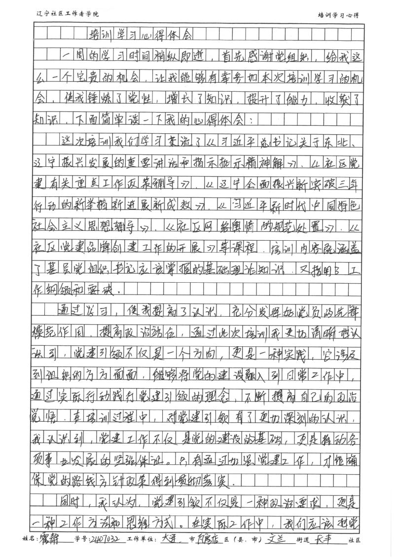 大连市瓦房店市文兰街道长丰社区党总支书记、居委会主任霍静学习心得