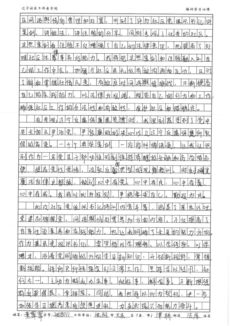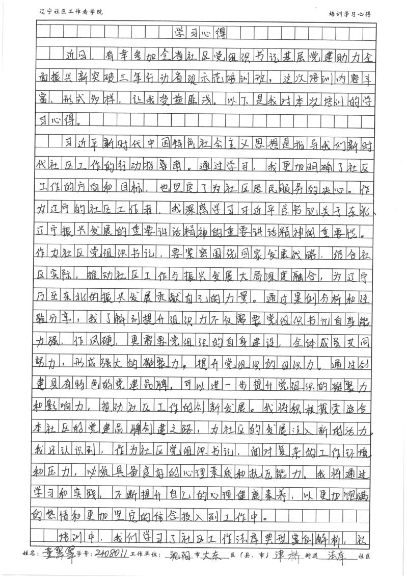 沈阳市大东区津桥街道法库社区党委书记、居委会主任董翠翠学习心得