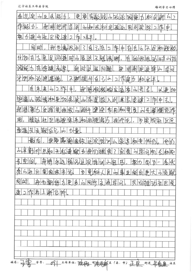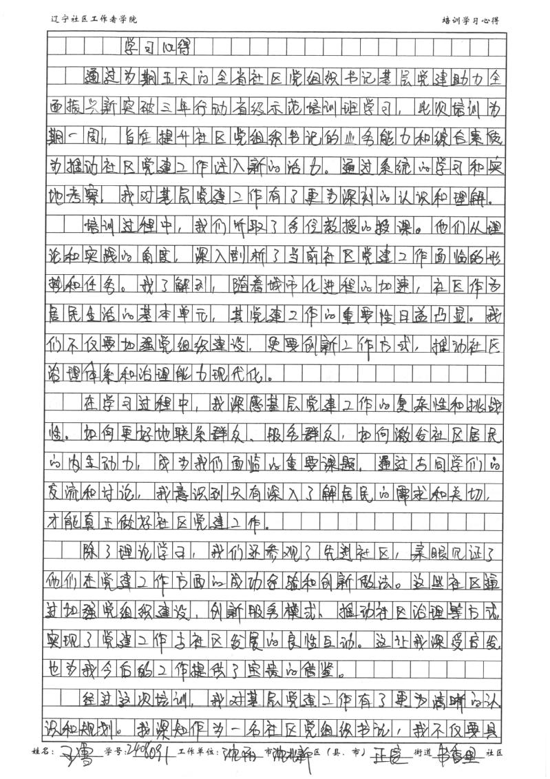 沈阳市沈北新区正良街道书香里社区党总支书记、居委会主任王雪学习心得