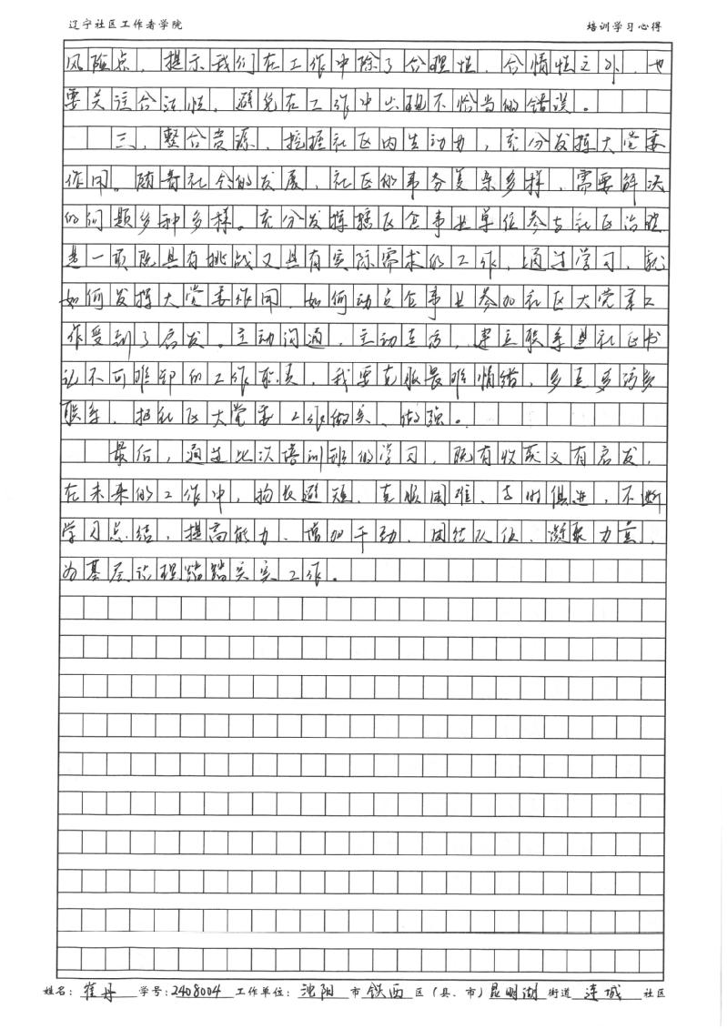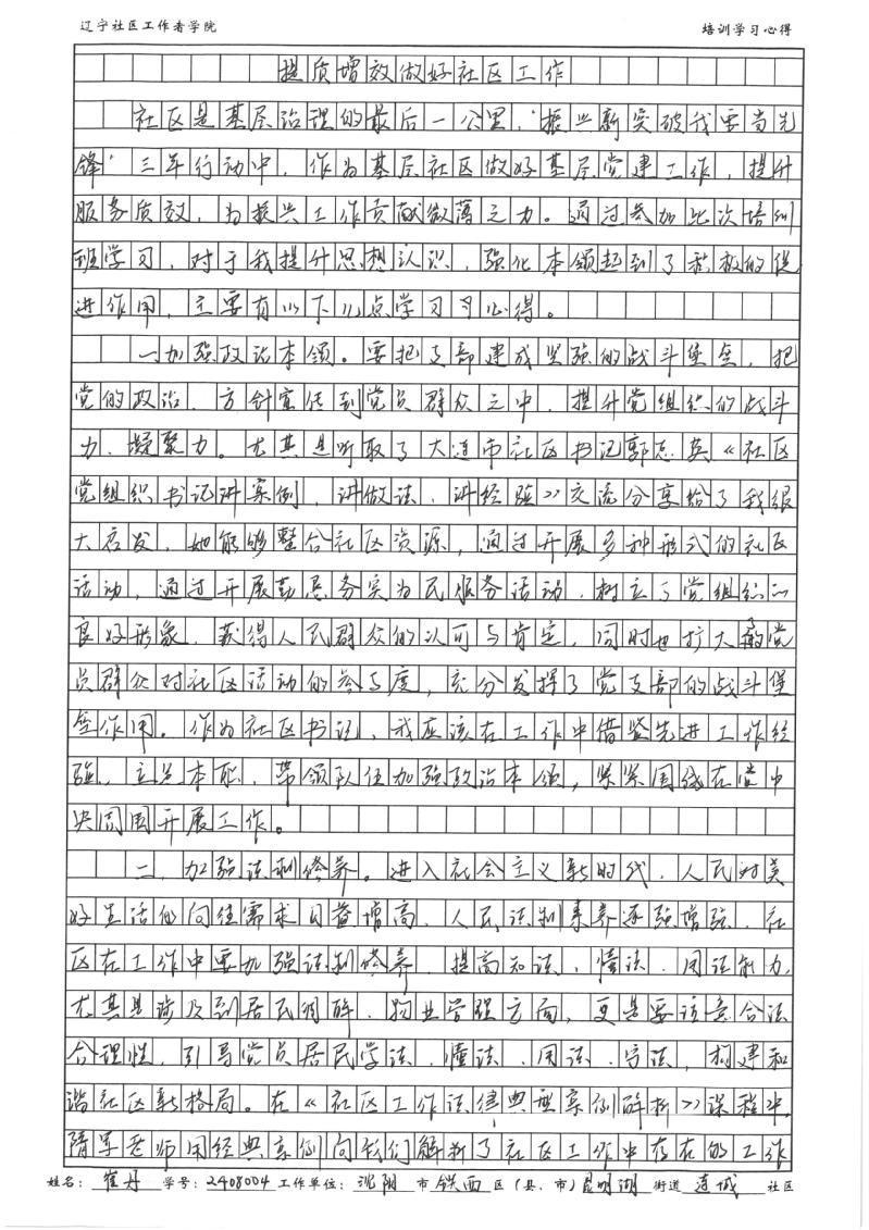 沈阳市铁西区昆明湖街道连城社区党支部书记、居委会主任崔丹学习心得