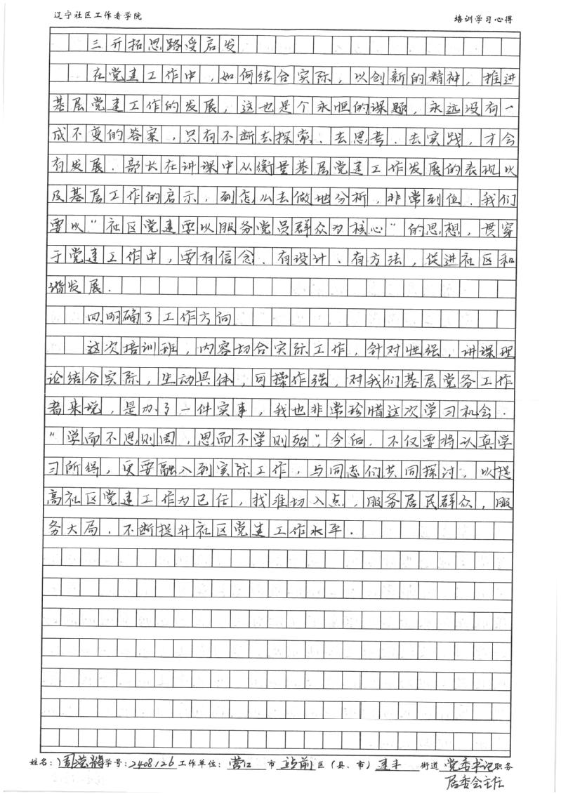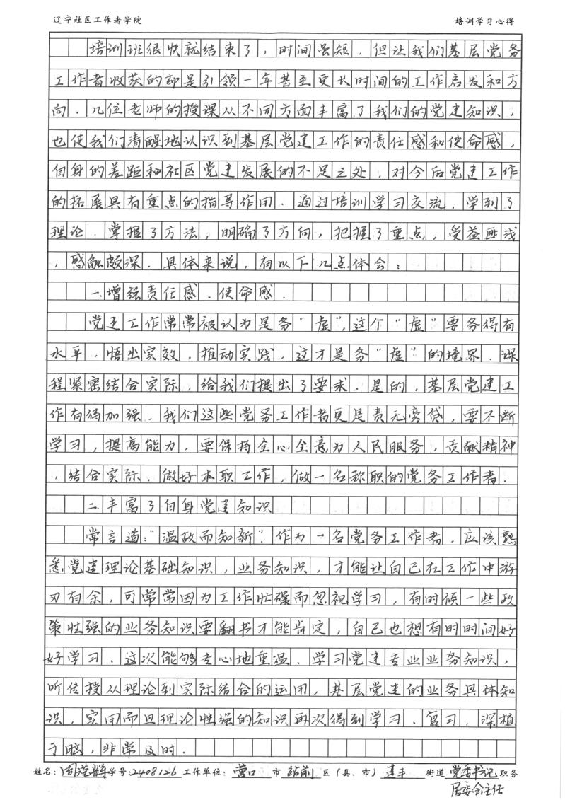 营口市站前区建丰街道丰收社区党委书记、居委会主任周滢辉学习心得