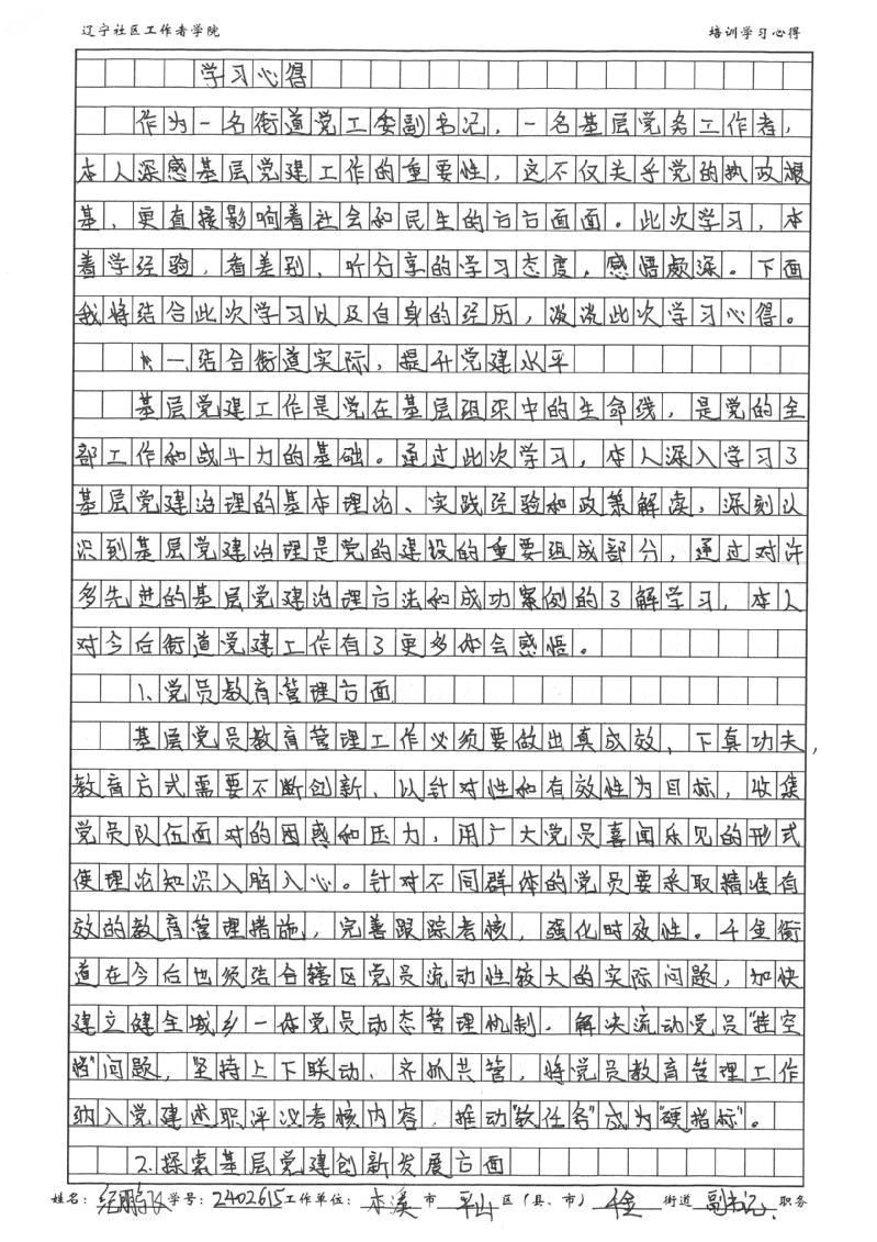 本溪市平山区千金街道党工委副书记纪鹏飞学习心得