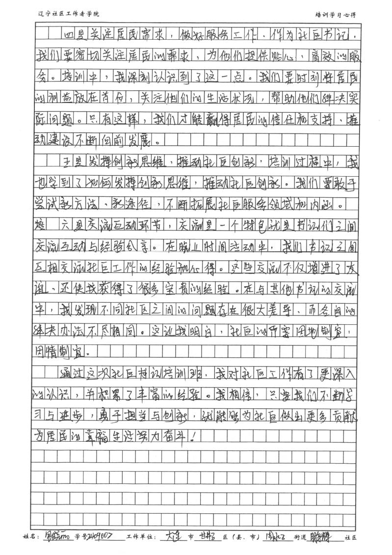 大连市甘井子区周水子街道鹏辉社区党委书记、居委会主任包晓丽学习心得