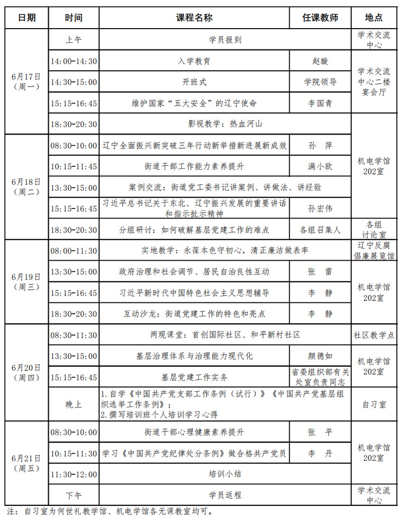 2024年第四期全省街道党工委副书记能力素质提升省级示范培训班(总第8期)课程安排