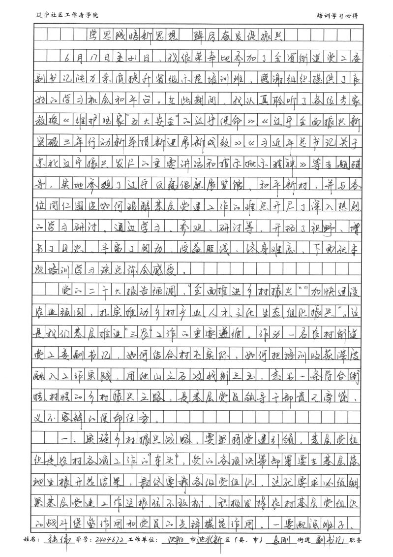 沈阳市沈北新区马刚街道党工委副书记张伟学习心得