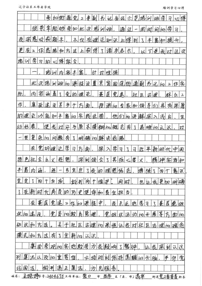 营口市西市区清华街道党工委委员王姝婷学习心得