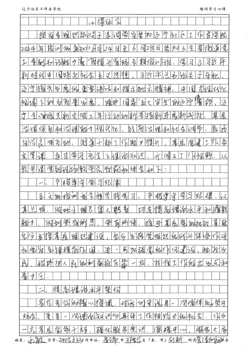 盘锦市兴隆台区创新街道党工委副书记于海文学习心得