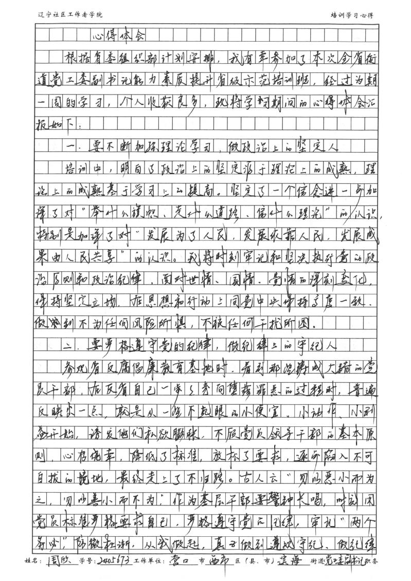 营口市西市区滨海街道党工委副书记周 欣学习心得