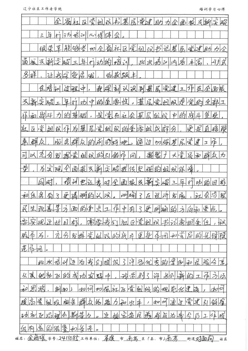 本溪市南芬区南芬街道对面沟社区党委书记、居委会主任金海礁学习心得