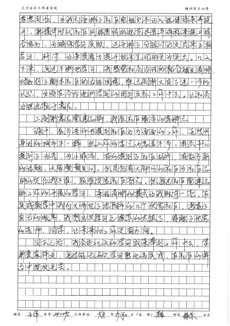 大连市沙河口区李家街道绿景社区党委书记、居委会主任王 洋学习心得