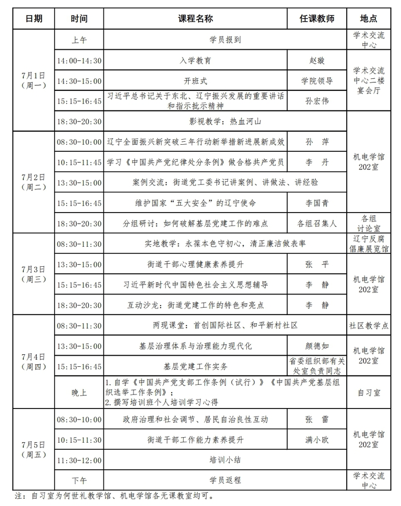 2024年第六期全省街道党工委副书记能力素质提升省级示范培训班(总第10期)课程安排