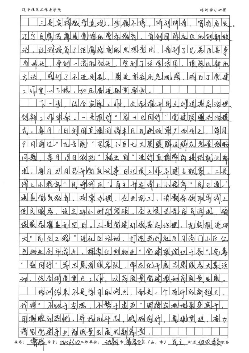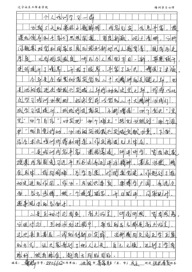 沈阳市苏家屯区民主街道党工委组织委员曹 群学习心得