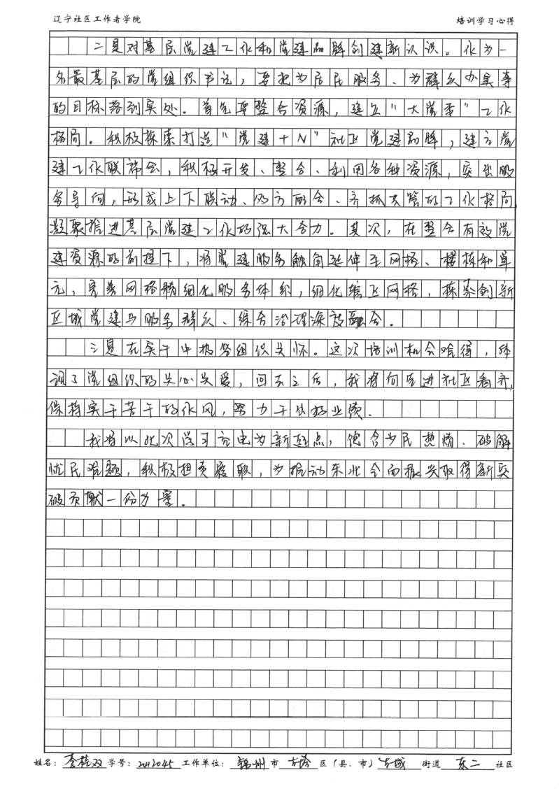 锦州市古塔区古城街道东二社区党委书记、居委会主任李桂双学习心得
