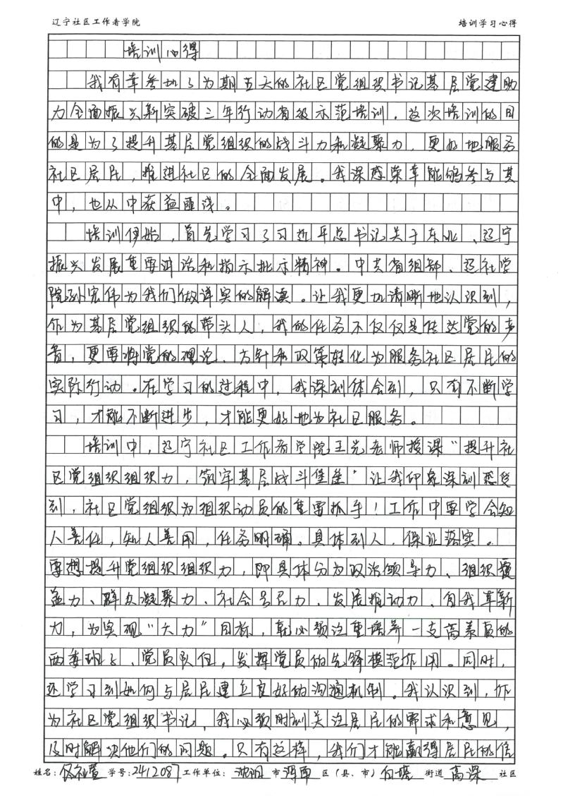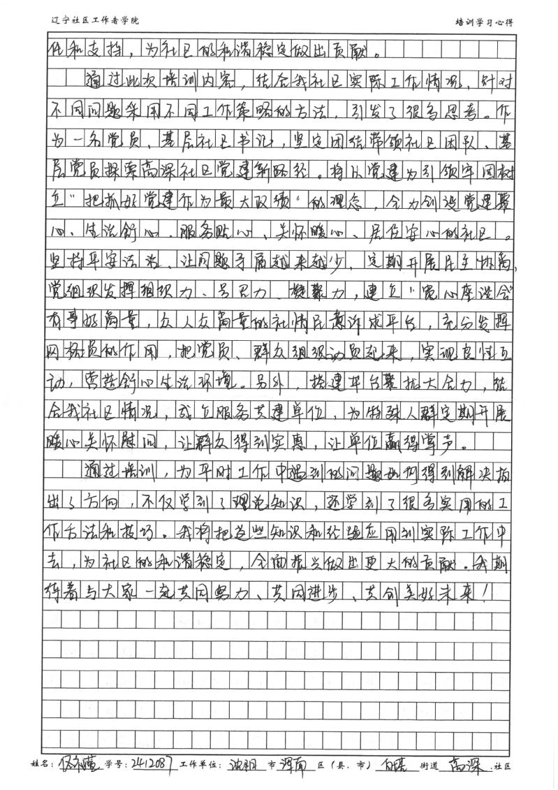 沈阳市浑南区白塔街道高深社区党支部书记、居委会主任佟祉萱学习心得