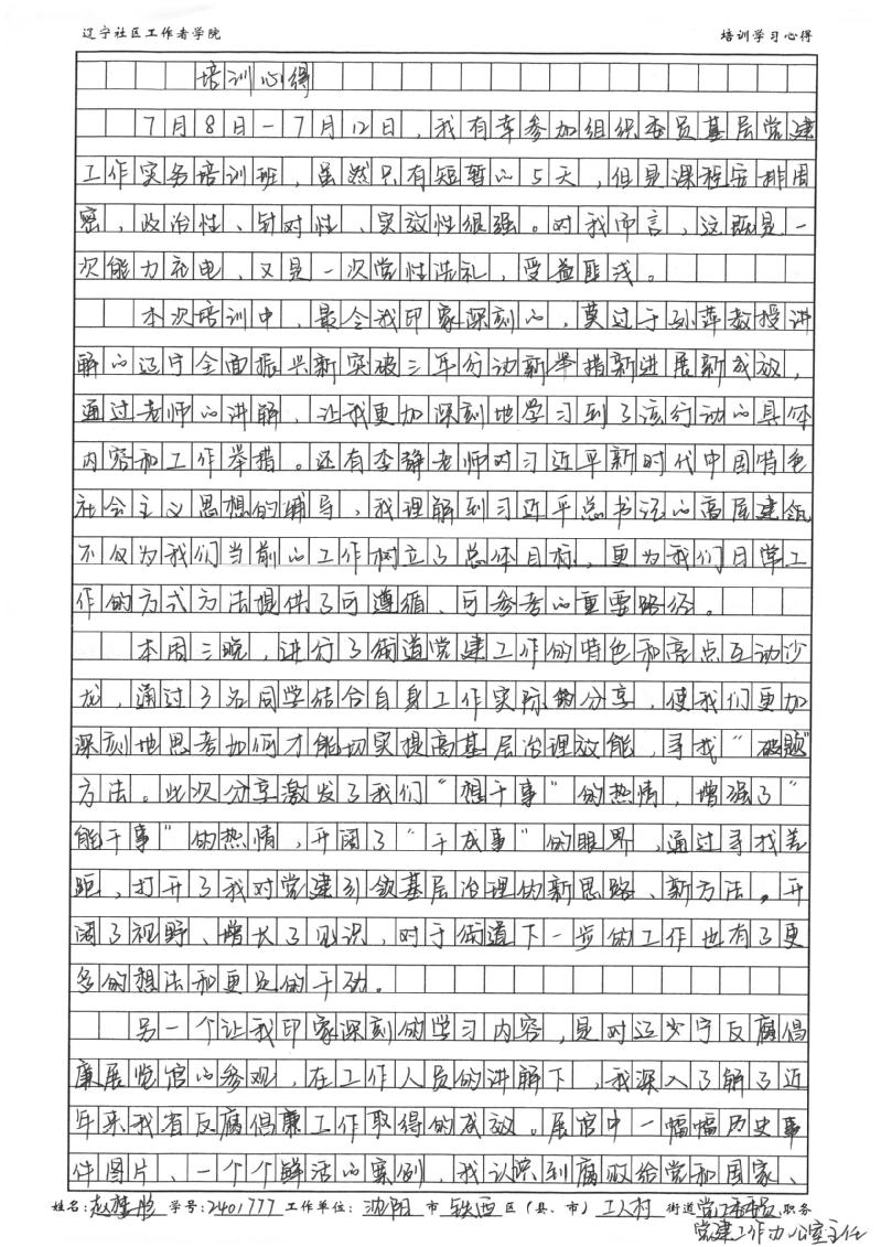 沈阳市铁西区工人村街道办事处党工委委员、党建工作办公室主任赵梦彤学习心得