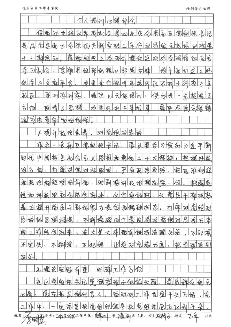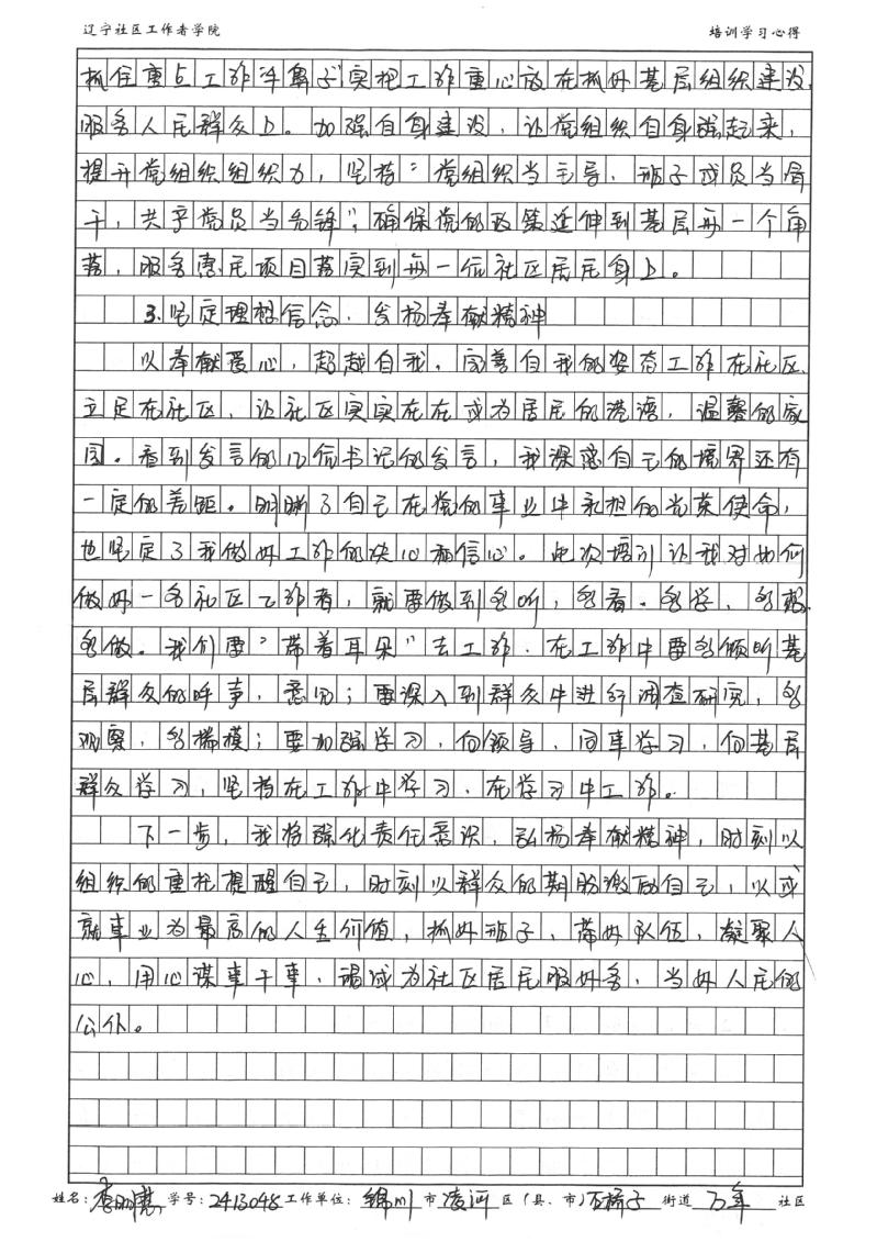 锦州市凌河区石桥子街道万年社区党委书记、居委会主任李明慧学习心得