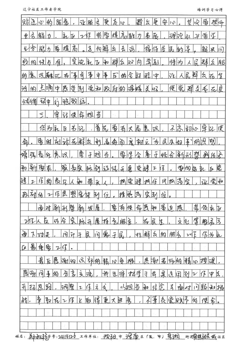 沈阳市浑南区东湖街道格林阳光城社区党支部书记、居委会主任郑秋艳学习心得