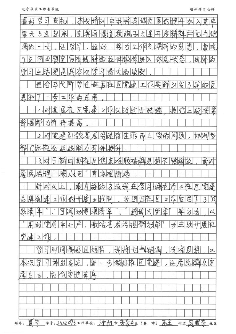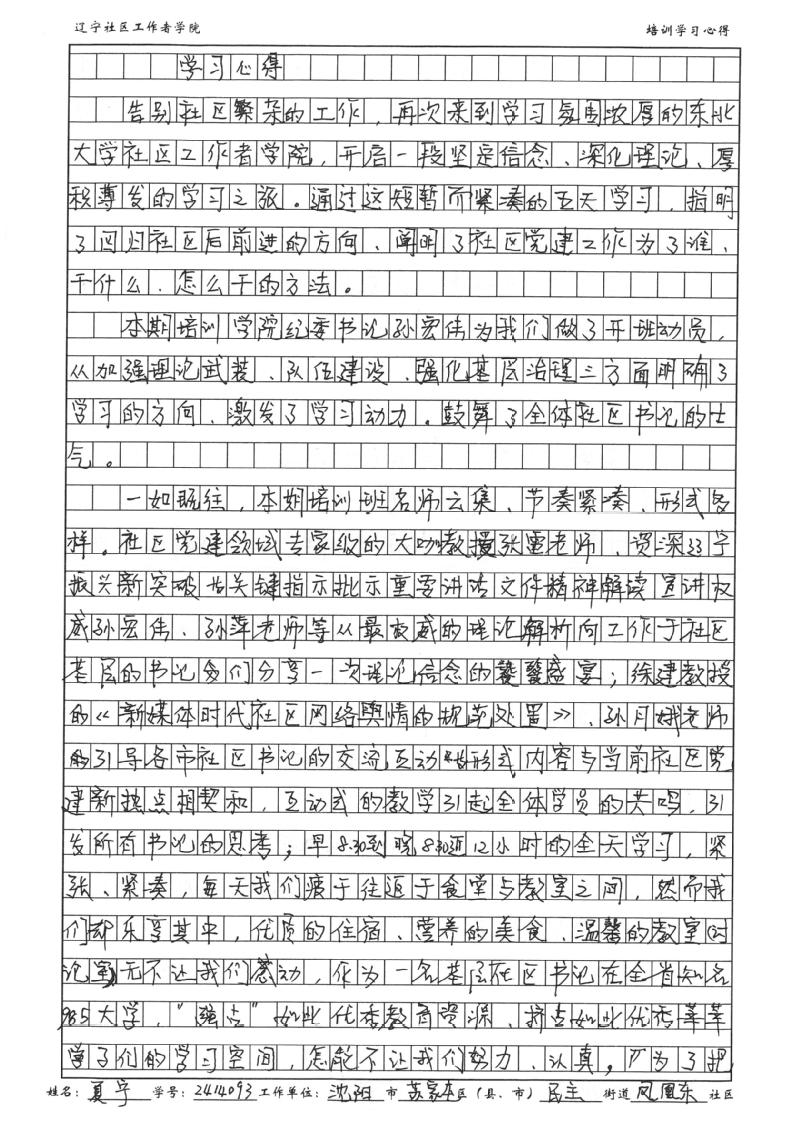 沈阳市苏家屯区民主街道凤凰东社区党委书记夏宁学习心得