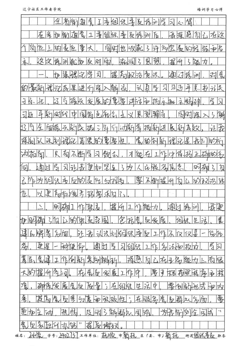 抚顺市新抚区新抚街道党工委组织委员孙悦学习心得