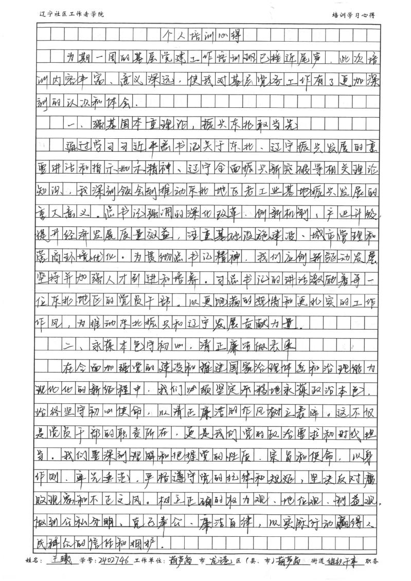 葫芦岛市龙港区葫芦岛街道党工委组织员王曦学习心得
