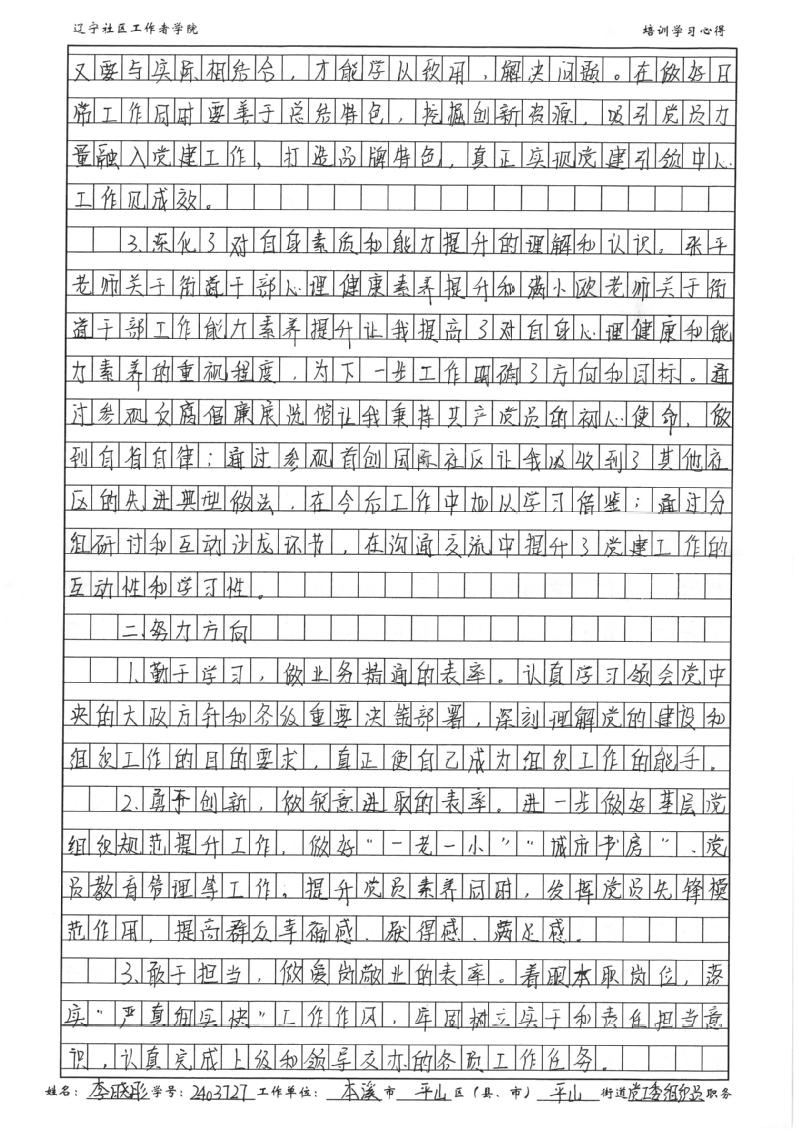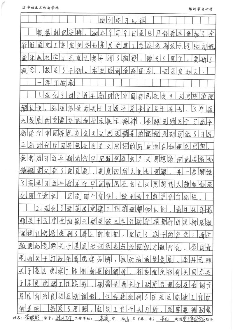 本溪市平山区平山街道党工委组织员李晓彤学习心得