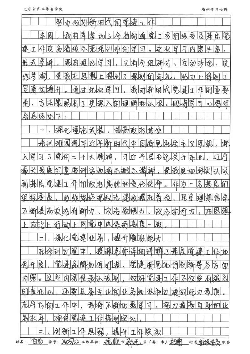 抚顺市新抚区站前街道组织委员白龙学习心得