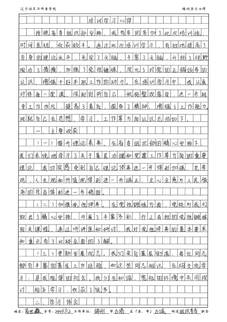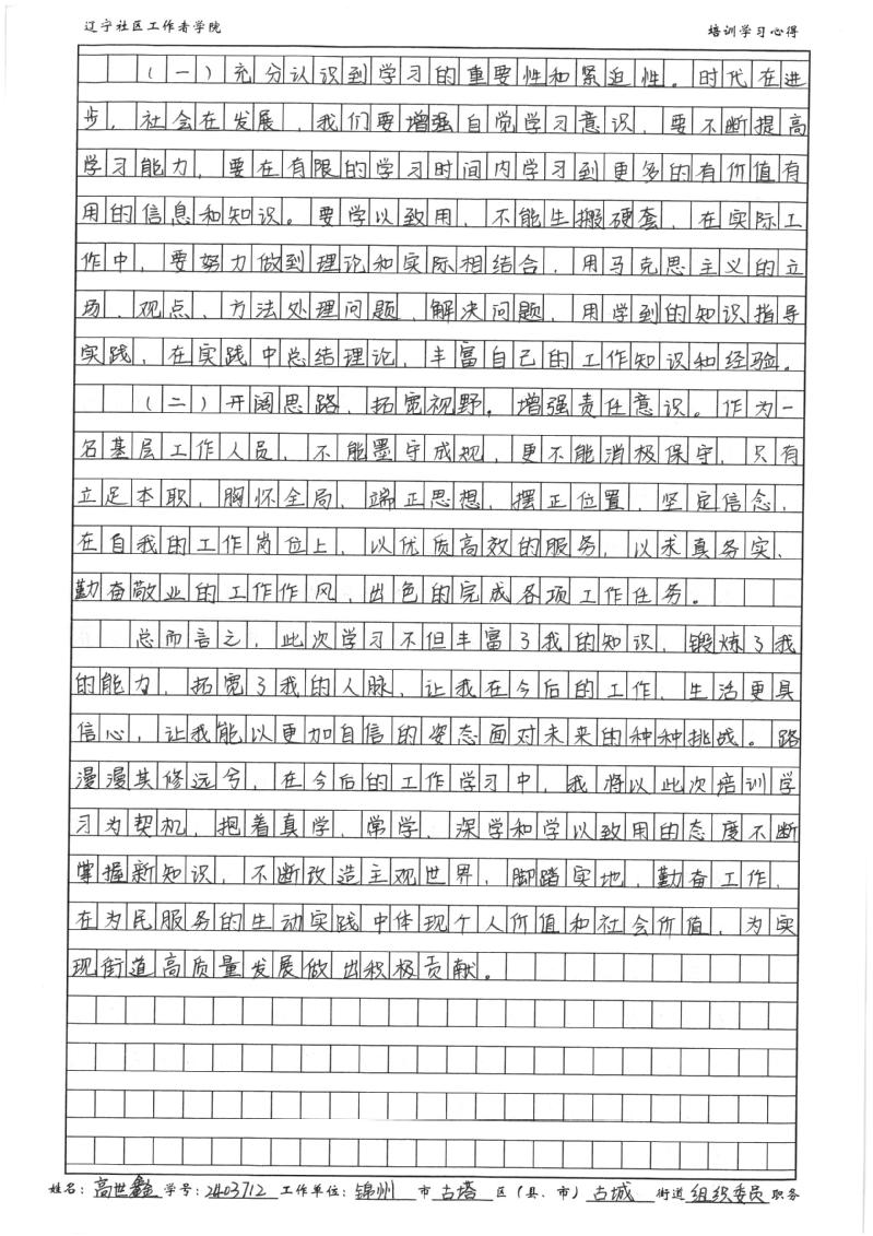 锦州市古塔区古城街道组织委员高世鑫学习心得