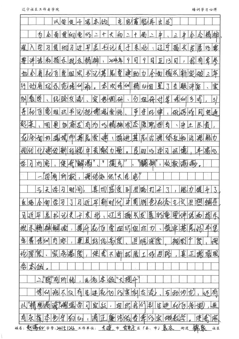 大连市甘井子区泉水街道锦泉社区党委书记、居委会主任赵满红学习心得