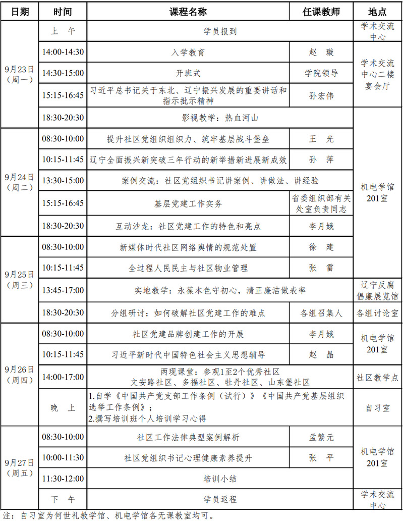 全省社区党组织书记基层党建助力全面振兴新突破三年行动省级示范培训班第十六期(总第 156 期)课程安排