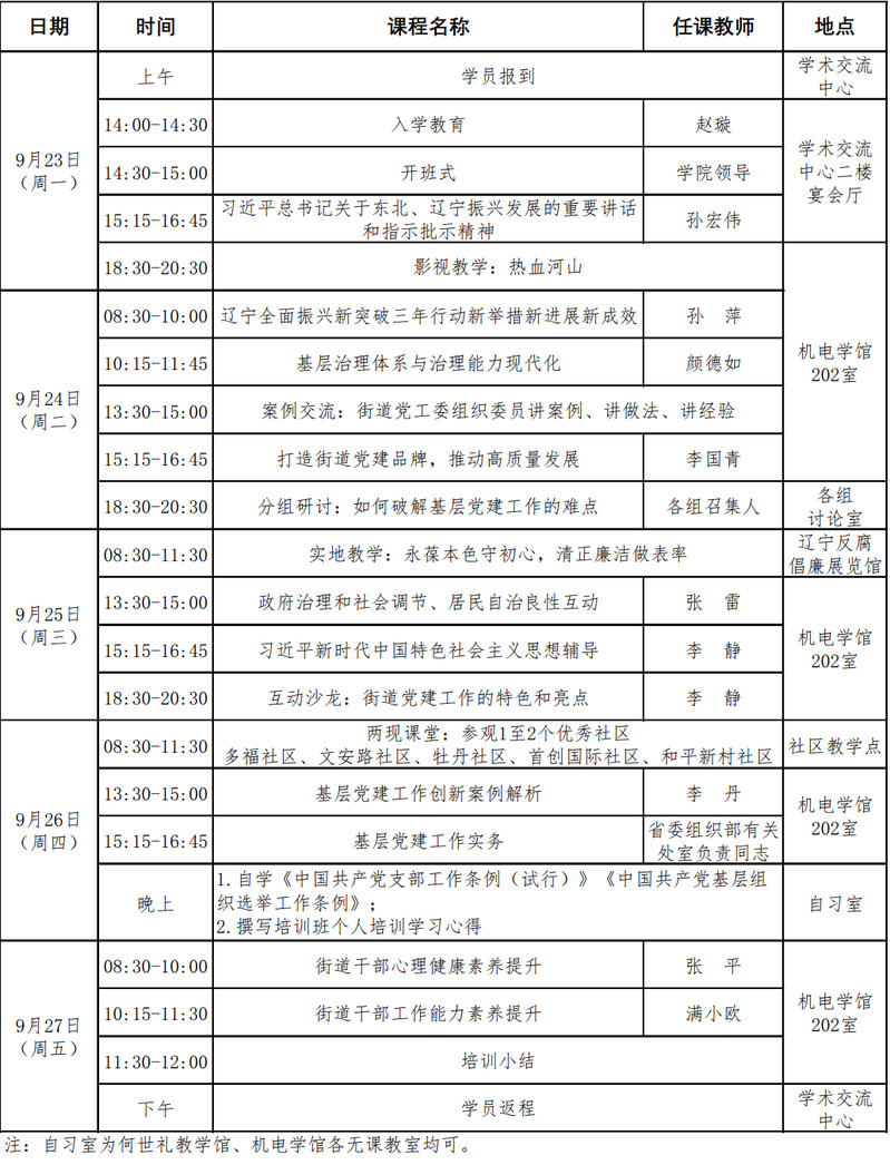 全省街道党工委组织委员基层党建工作实务省级示范培训班第四期(总第 12 期)课程安排