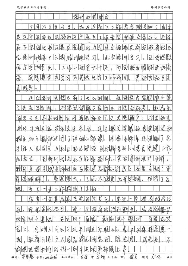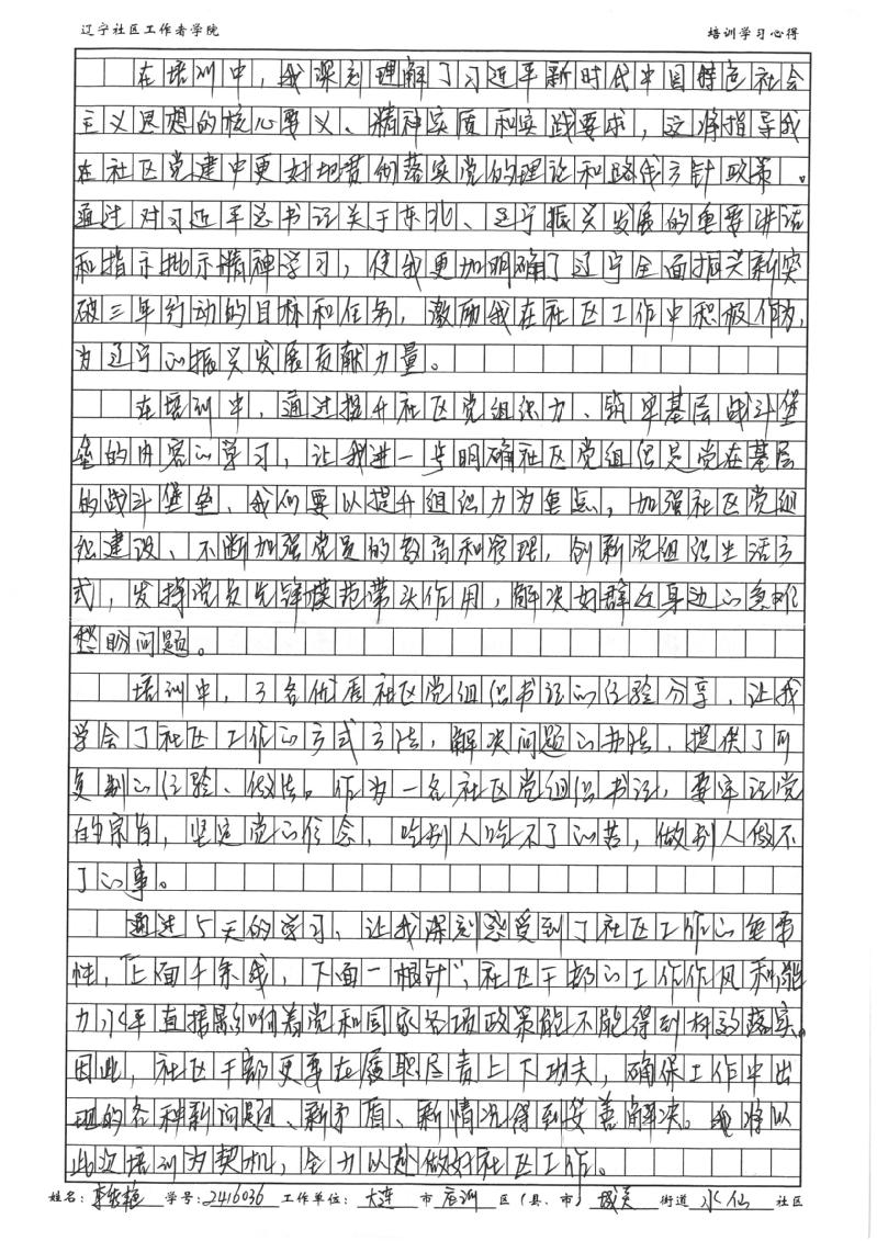 大连市庄河市城关街道水仙社区党总支书记、居委会主任李秀艳学习心得